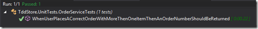 1: [Test] 2: public void WhenUserPlacesACorrectOrderWithMoreThenOneItemThenAnOrderNumberShouldBeReturned()