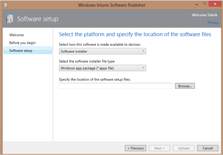 For my device I selected Windows Intune as the device authority. However this does not change the deployment process of a sideloaded app. Whatever the method you choose the process of enrolling a device and then publishing an app remains the same which can be divided into following sections: